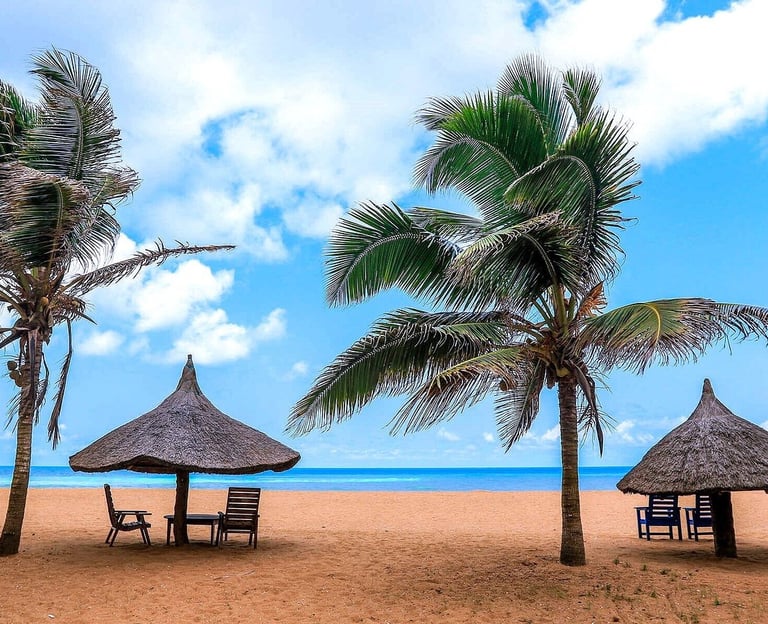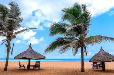 Découverte de Cotonou, du marché Dantokpa, puis route vers Ouidah : temple des Pythons, Route des Esclaves, musée et détente sur la plage.